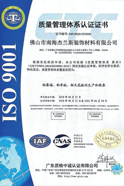 佛山杰蘭斯建材有限公司是一家專業生產室內外金屬鋁單板、鋁單板,天花鋁單板,氟碳鋁單板,木紋鋁單板,鋁單板加工廠等鋁單板生產廠家及鋁型材加工噴涂的現代化企業,是集設計、生產、銷售、安裝一條龍服務的集團公司。公司擁有先進的數控鈑金加工設備,配備了日本蘭氏全自動靜電氟碳涂線、數控沖床、數控剪板機、數控折彎機及全自動真空吸塑熱轉印機、數控熱壓機等多套先進的高精度的幕墻產品生產加工設備。
